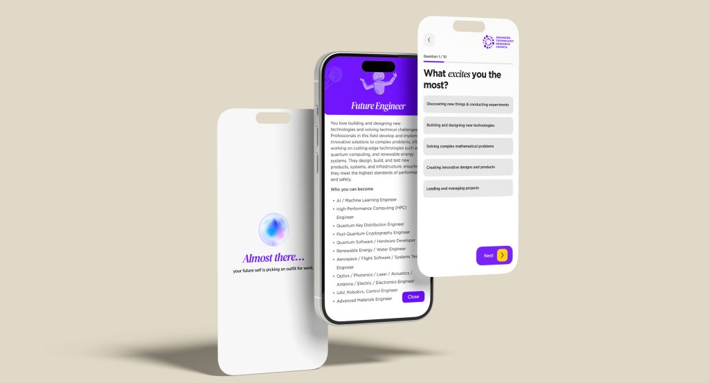 - Complexity to Simplicity: The underlying logic required to categorise users into distinct archetypes (e.g., “Quantum Researcher” vs. “Robotics Engineer”) was nuanced and complex. We had to translate this multi-variable logic into a frictionless, 5-minute “gamified” experience.